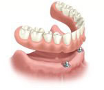 Dit is een uitneembaar, volledige kunstgebit, dat vastklikt aan een metalen staafje dat twee of meer implantaten met elkaar verbindt.  Het staafje houdt het gebit op de plaats en zorgt voor veel draagcomfort. Deze oplossing is relatief betaalbaar en wordt vaak door de verzekering vergoed.